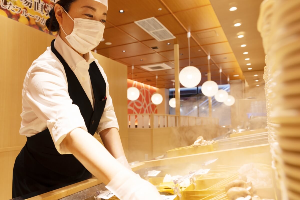 「串家物語」は食べ放題のスタイルで、オーダーを取るなどお客様に接する機会が少なく、距離ができがちです。そんな中でも、何か一つお客様に心温まるものをお渡しできるお店でありたいです。今以上に、いろいろなものから選べて、行けば必ず笑顔になれる楽しい空間を作るため、誠実でウソのない行動を積み重ねていきます。